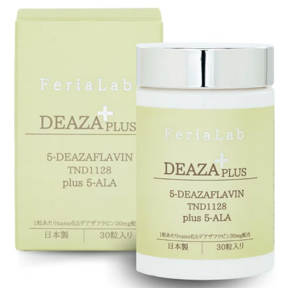 Deaza plus 5 DEAZAFLAVIN TND1128 plus 5-ALA – вінець багаторічних досліджень та новаторства в галузі біологічних наук компанії FeriaLab. Виробник використовує високочистий дезафлавін. Який має сертифікат якості японської асоціації 5-дезафлавін.