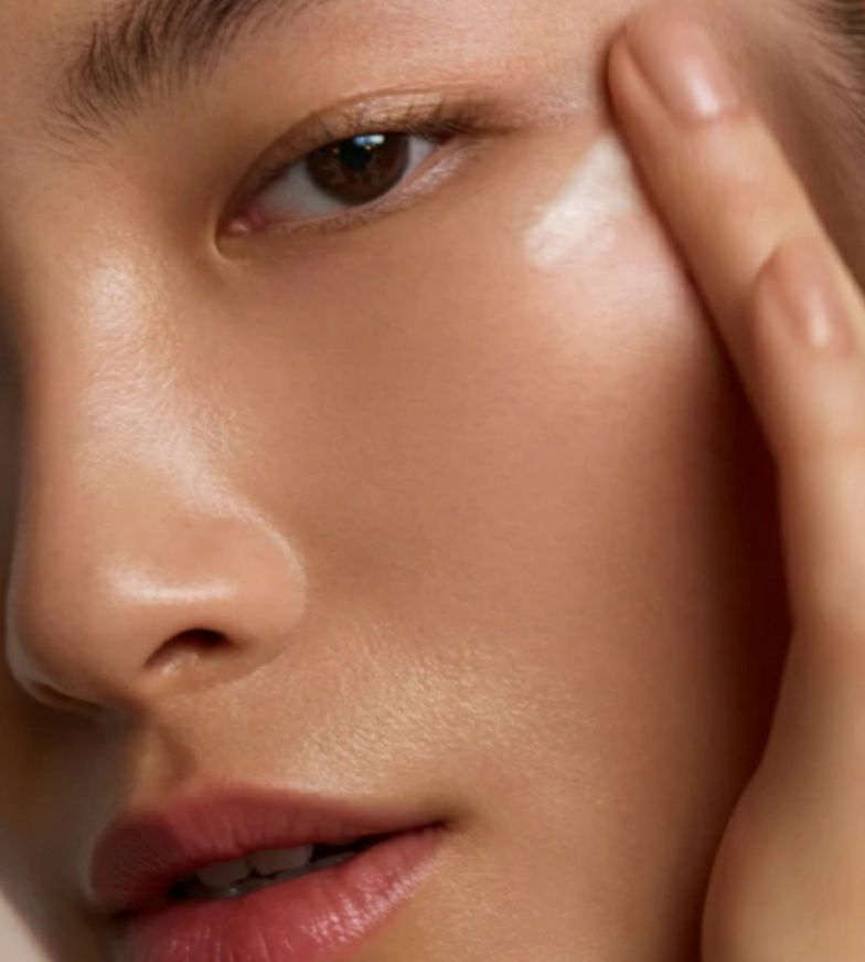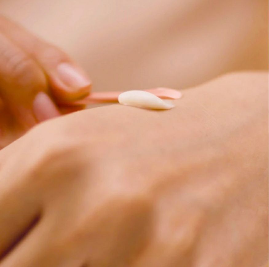 Шаг 2: Нанесите безымянным пальцем точки крема вокруг глаз.